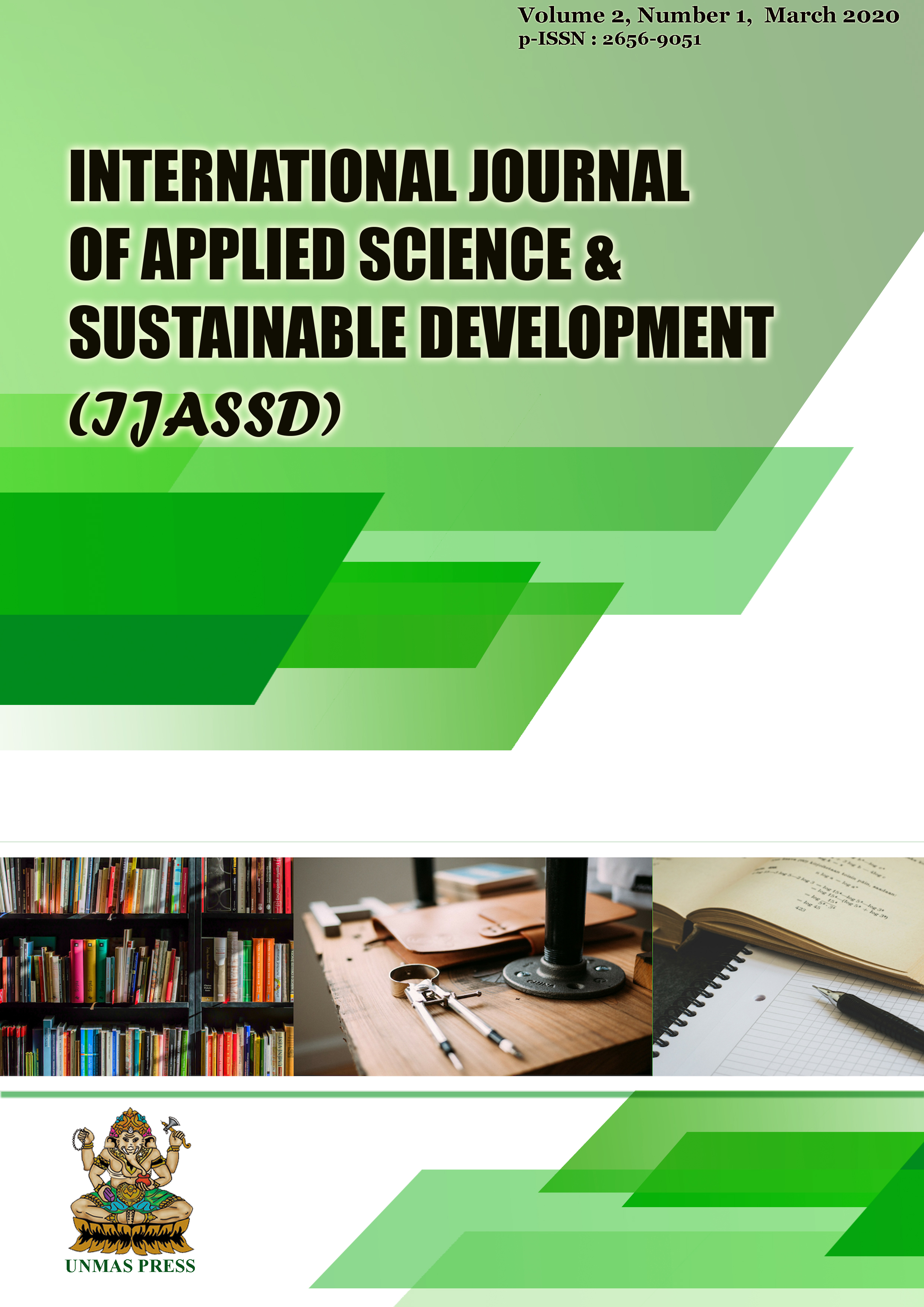 Vol. 2 No. 1 (2020)International Journal of Applied Science and Sustainable Development (IJASSD) is an international journal published twice per year in print and online by Mahasaraswati Denpasar University (Unmas) in collaboration to Postgraduate School of Mahasaraswati Denpasar University. Located in Kamboja Street, Denpasar of Bali-Indonesia. The journal publishes research papers in the fields of science and technology such as Biology in general, Agriculture, Environmental Science, Engineering, Mathematics, Orodental Medical Sciences, and so on.