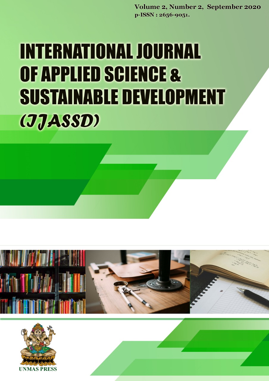 Vol. 2 No. 2 (2020)International Journal of Applied Science and Sustainable Development (IJASSD) is an international journal published twice per year in print and online by Mahasaraswati Denpasar University (Unmas) in collaboration to Postgraduate School of Mahasaraswati Denpasar University. Located in Kamboja Street, Denpasar of Bali-Indonesia. The journal publishes research papers in the fields of science and technology such as Biology in general, Agriculture, Environmental Science, Engineering, Mathematics, Orodental Medical Sciences, and so on.