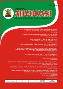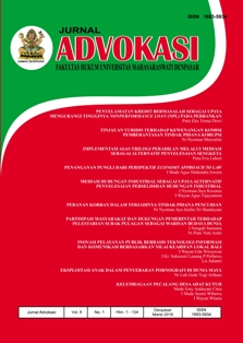 Vol. 8 No. 1 (2018)The Jurnal Advokasi with registration number 1693-5934 is a journal that contains scientific publications in the field of law. The Jurnal Advokasi is published by the Faculty of Law, Mahasaraswati University, Denpasar and is published twice a year, which is every March and September.