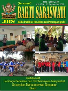 Jurnal Bakti Saraswati with registration number ISSN : 2088-2149, e-ISSN: 2685-3302 is a scientific journal published by the Institute for Research and Community Empowerment of Mahasaraswati University Denpasar since March 8, 2011 and it is a media for publishing research results, both pure and applied research and reviews of the application of science and technology for society, as well as critical science and technology ideas.