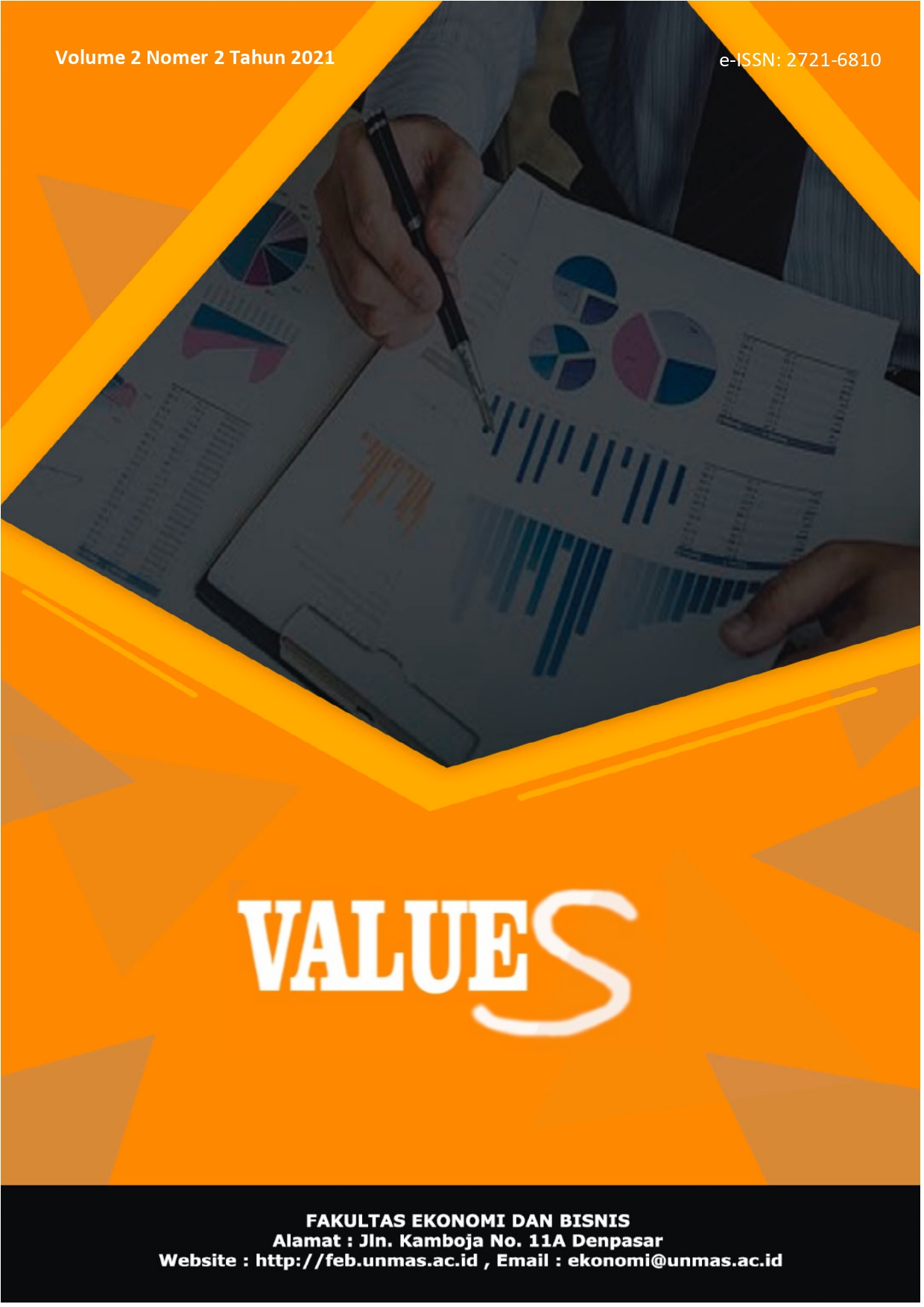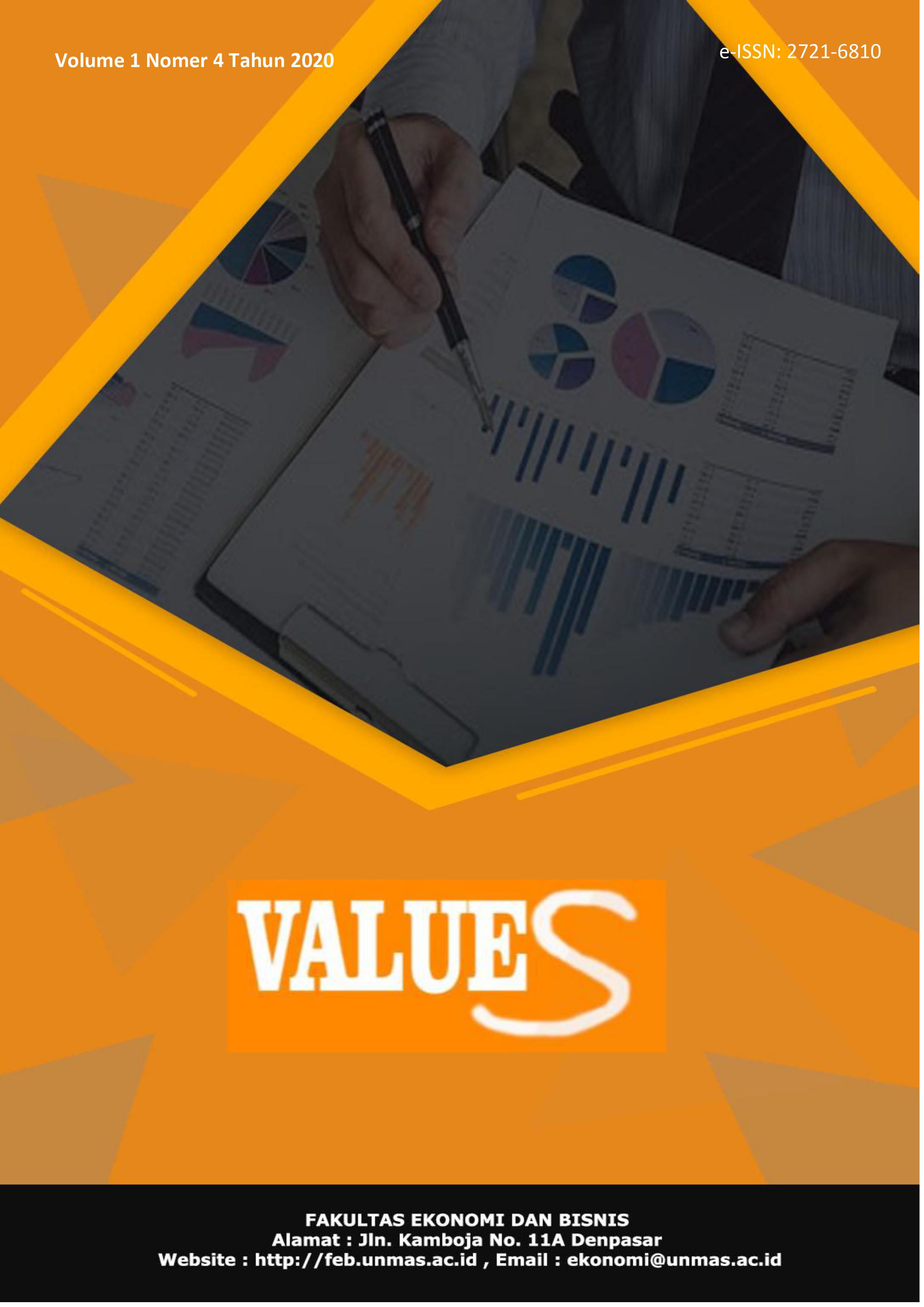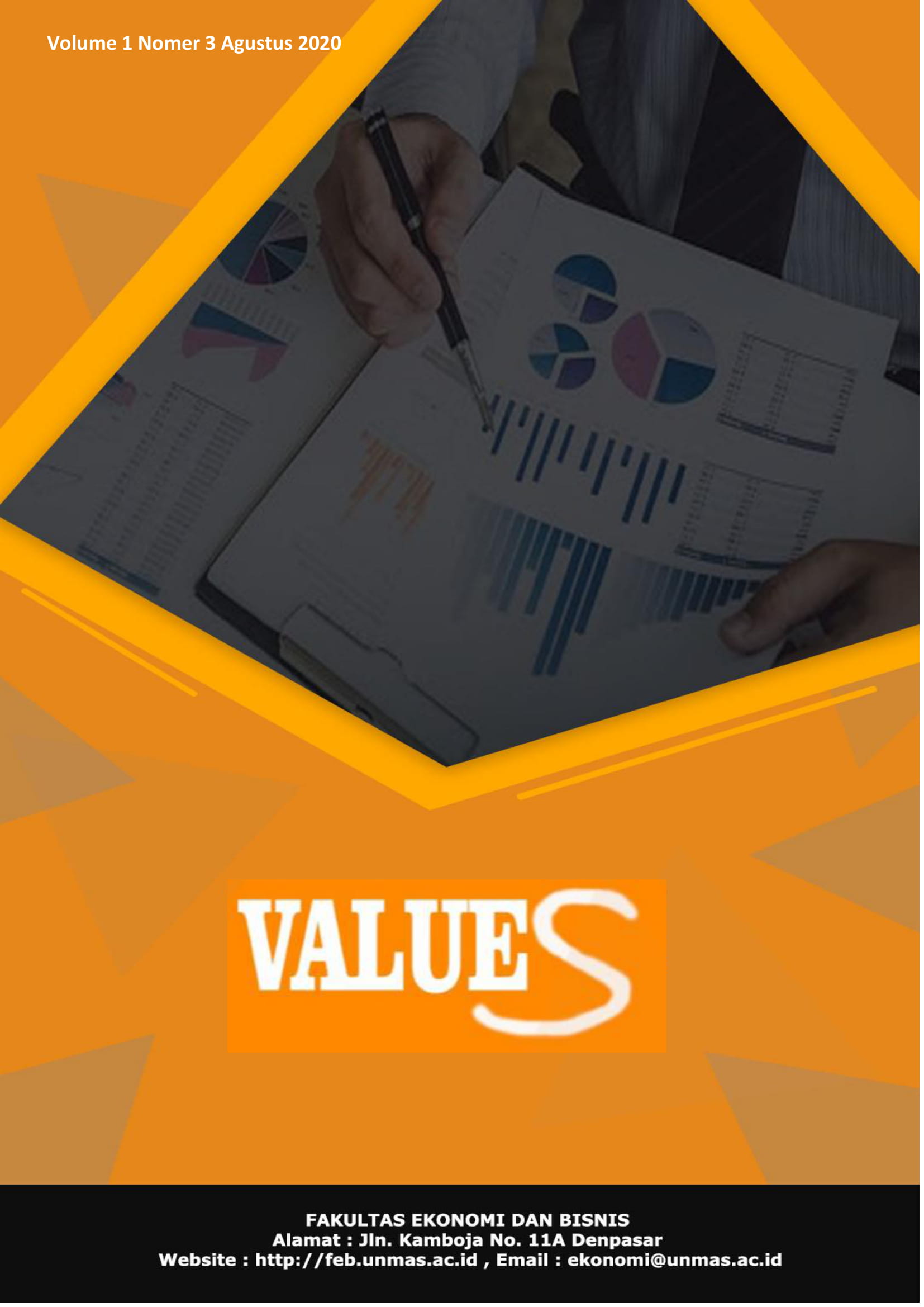 Vol. 1 No. 2 (2020)VALUES is a scientific journal for the development of management science published by the Management Study Program of the Faculty of Economics and Business, Mahasaraswati University, Denpasar. This journal is a means of publication of research results of lecturers and undergraduate students in improving the quality of higher education research. This journal contains articles related to Management Science. The publication of this journal was carried out three times in his knowledge in April, August and December.