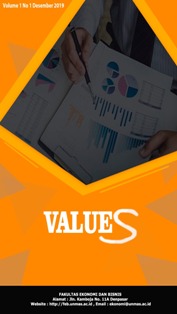 Vol. 1 No. 1 (2019)VALUES is a scientific journal for the development of management science published by the Management Study Program of the Faculty of Economics and Business, Mahasaraswati University, Denpasar. This journal is a means of publication of research results of lecturers and undergraduate students in improving the quality of higher education research. This journal contains articles related to Management Science. The publication of this journal was carried out three times in his knowledge in April, August and December.